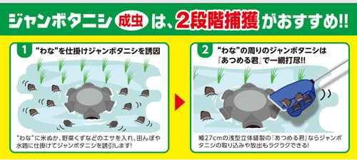 農家さんの強い味方!ジャンボタニシの捕獲器、ジャンボタニシをエサで誘引して捕獲します!