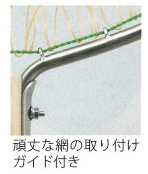 網目:15mm目 水切りのいいナイロン生地 枠は軽量で強いステンレスを使用、頑丈なガイドで網を取り付けています。