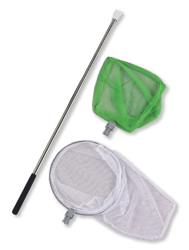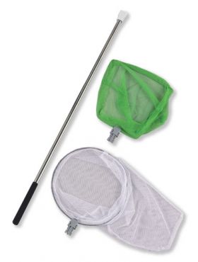 ※2026商品。コンパクトタイプの水陸両用網。魚網ヘッド(幅22.5cm)、昆虫網ヘッド(径24cm)各1枚入