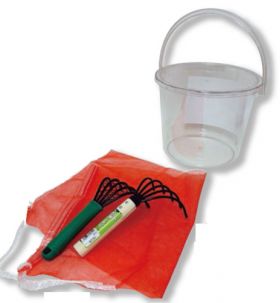 サイズ:クマデ(12x24,5x7.5cm)、ネット(35x62cm)、バケツ(径28x23cm)