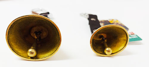 音色が良く響く真鍮製、カラビナ付き